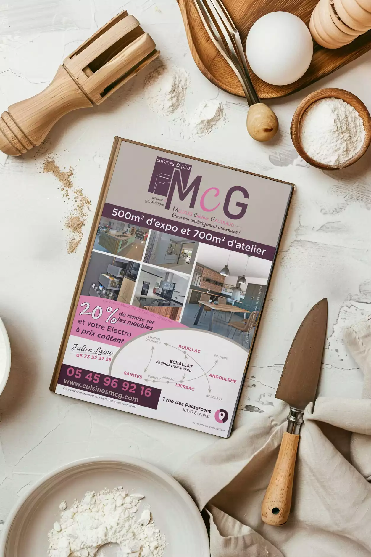Le site internet constitue l’aboutissement de l’expérience client et le pilier numérique de la nouvelle charte graphique. Conçu en Responsive Design pour une navigation fluide sur mobile et tablette, il transpose l’élégance des cuisines MCG dans l’univers digital.